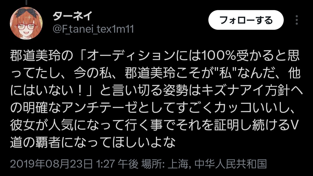 | … | 9526/01/08(木)20:28:30No.1390649151+>ここで数天前って言い出した奴とか同接ムシキングのスクショでスマホの画面が中国時間だった奴とかホロアンにじリスアカウントのIDが中国語発音の表記だったりとか色々あるよ |
