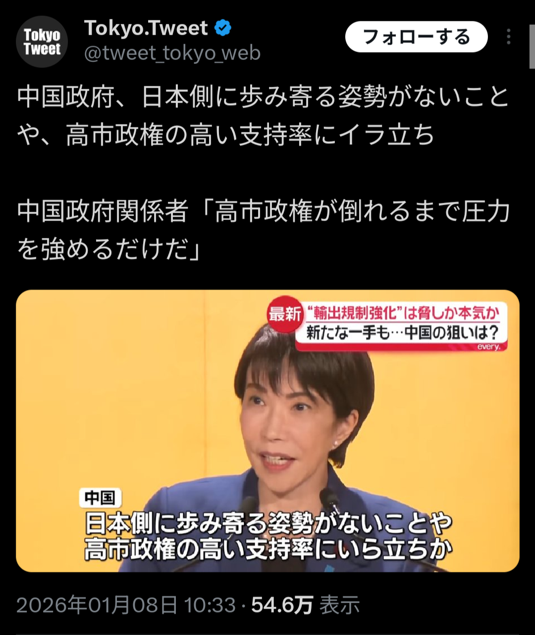 | … | 8826/01/08(木)22:37:22No.1390694668+高市の台湾有事発言が不用意だったのは事実だと思うけど |
