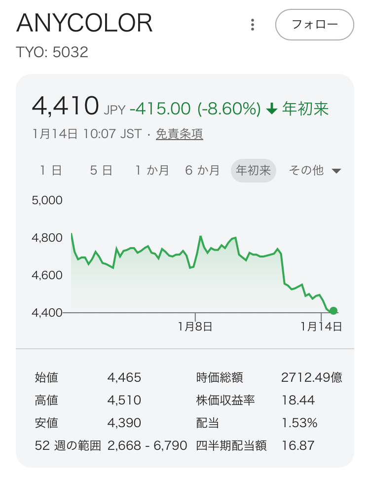 | … | 626/01/14(水)10:31:37No.1392344605そうだねx13カバーは株式上場の時点で金は開発に回すから配当とか投資家に美味しい思いさせるのはすぐには難しいよと言ってるんで… |