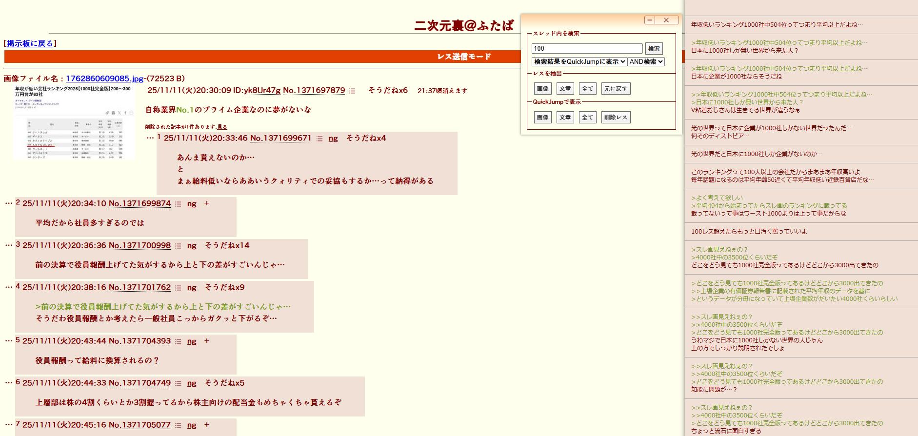 | … | 26726/01/14(水)12:40:40No.1392370867+>さっさとネット工作してる証拠出てこねえかなって思ってる |