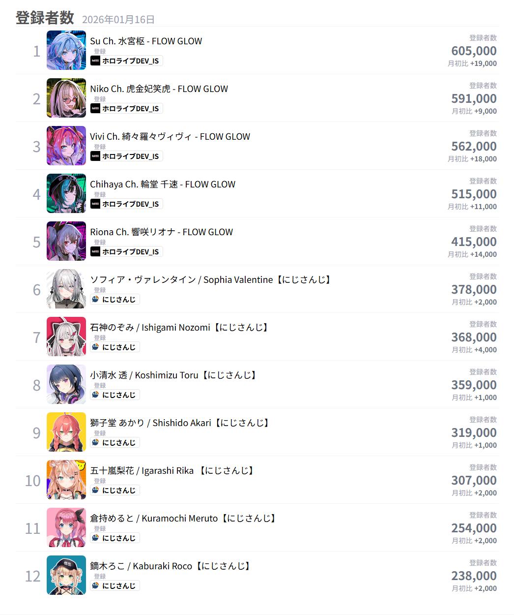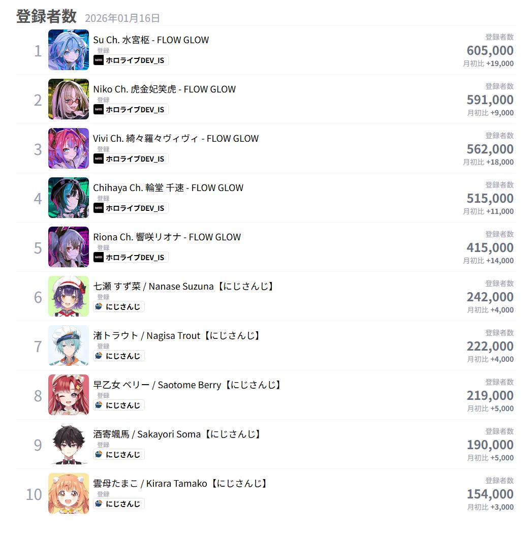 | … | 42026/01/16(金)01:00:58No.1392853930そうだねx2>にじさんじは23年くらいからデビューしてるの全部失敗ってこと? |
