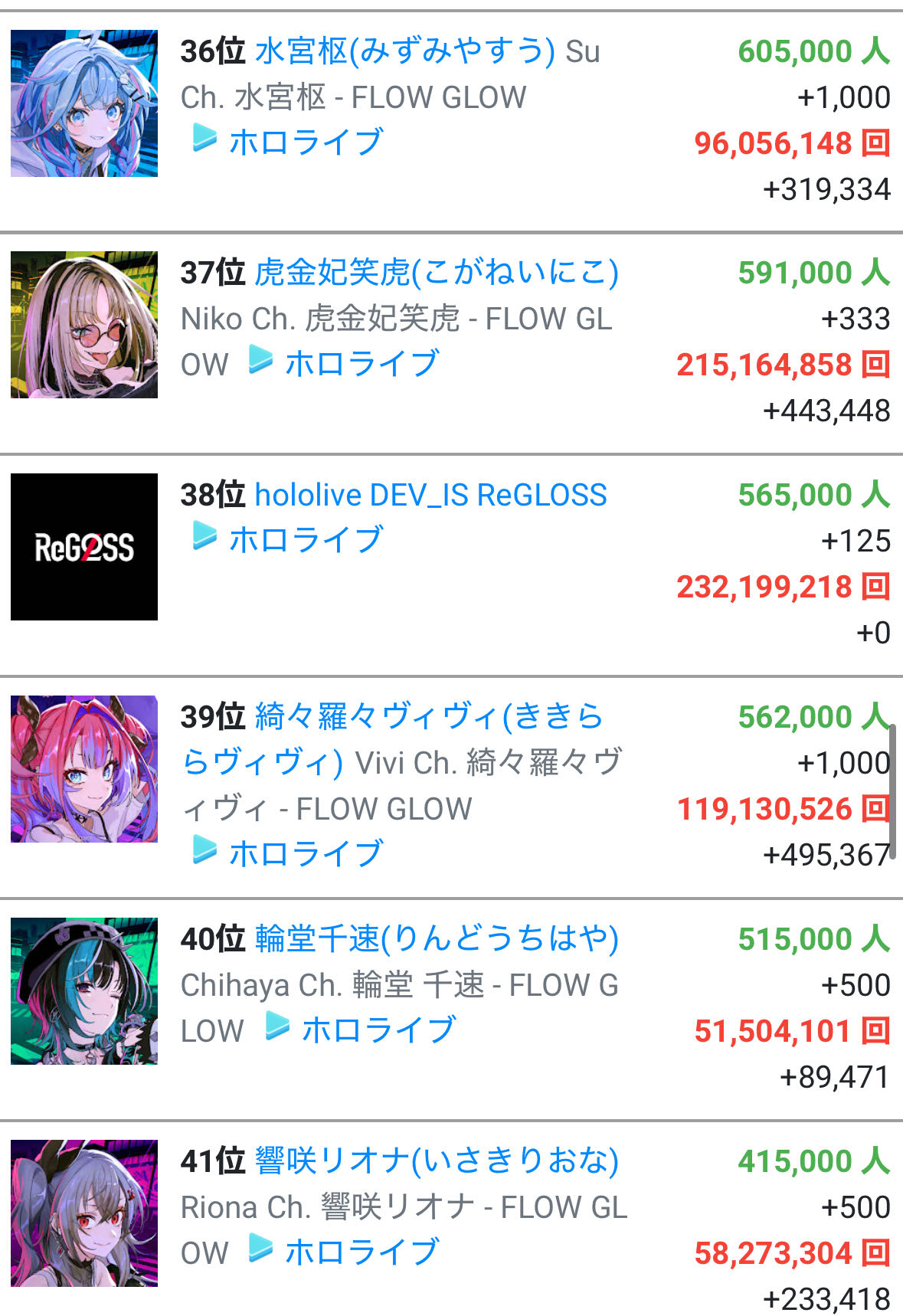 | … | 39626/01/16(金)00:56:19No.1392852927そうだねx1デビュー間もなくしてにじリスが放火したリオナは3D前の33万から一気に伸びて年末で40万行ったんだよな |