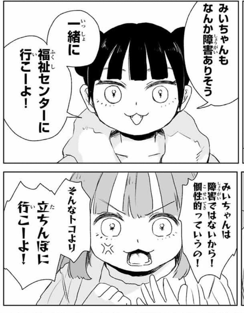 | … | 16726/03/01(日)10:54:45No.1406641537+>最近俺の中学でこの漫画流行ってるせいなのか障害者の事をみいちゃんって呼ぶようになってきた… |