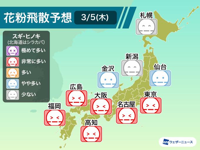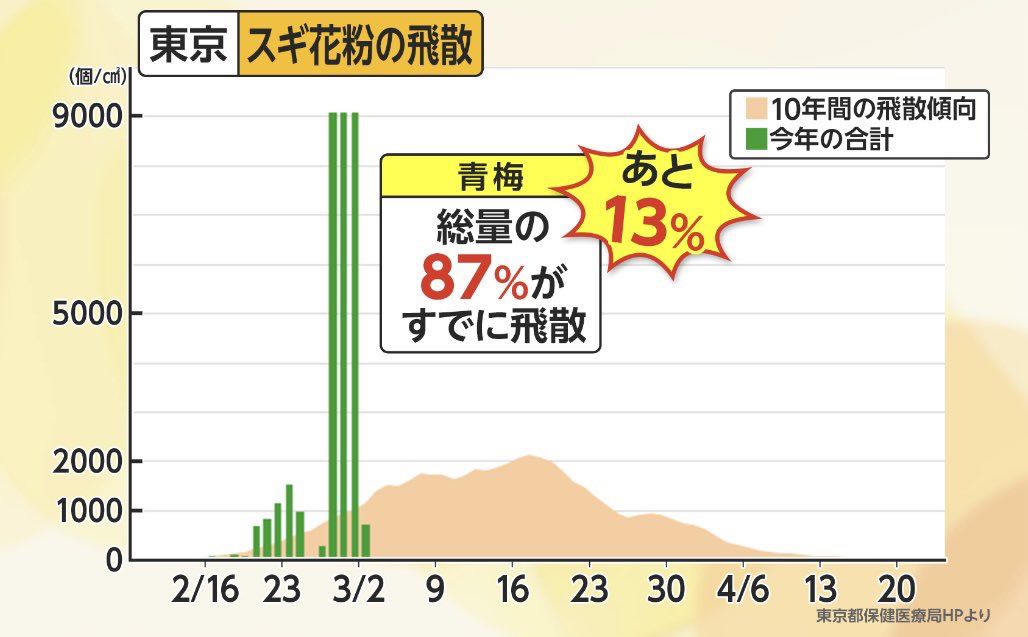 | … | 6326/03/05(木)10:50:23No.1407845708+今年のピーク予想は3月10日くらいだから例年より大分早いね |