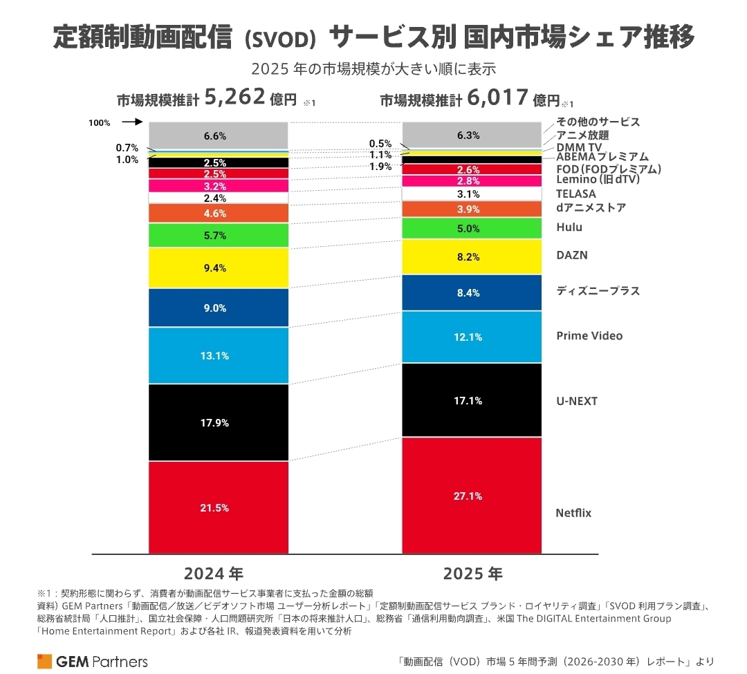 | … | 1426/03/13(金)05:43:44No.1410219075+U-NEXTは2000円だから人数換算ならシェアは下を突き放してるって程じゃないか |