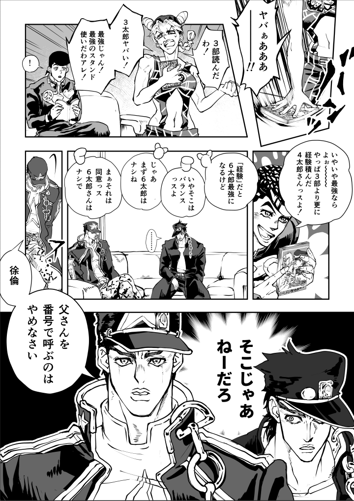 | … | 29726/03/21(土)20:36:04No.1412921000+>>徐倫が6歳くらいのころに4部で高熱出したのに日本にいて何もしてくれなかったって言われてたのが4太郎 |