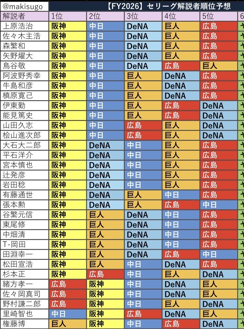 | … | 526/03/24(火)22:50:04 ID:EhxmVQT2No.1413948683+>解説者どもがみんな6位予想だから5位以上になったら許すわ |