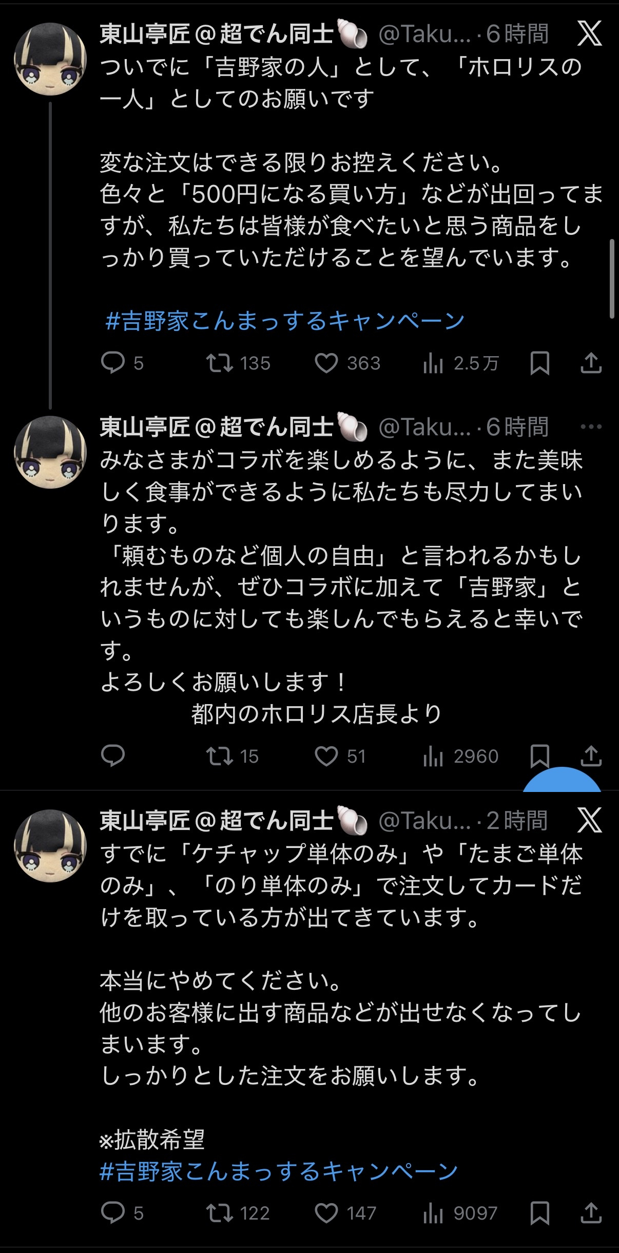 | … | 4326/03/25(水)18:39:42No.1414153718+牛丼チェーン店「すき家」は25日、きのう24日に販売した一部商品で価格表記の誤りがあり、商品代金を過剰に徴収していたとして謝罪した。対象となる利用者には差額の返金対応を行う。 |