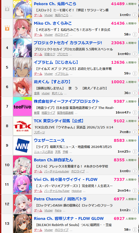 | … | 1326/03/25(水)21:25:25 ID:mDyywJ1cNo.1414222648そうだねx9久しぶりにランキング見たら現在にじさんじ上2人がBOTでダメだった |