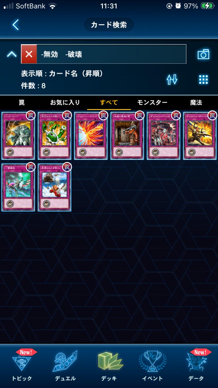 | … | 6026/03/29(日)11:14:24 ID:NKlLkMssNo.1415324430+>テキストに「無効」または「破壊」が含まれていないカウンター罠 |