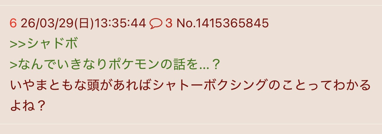| … | 726/03/29(日)13:36:20No.1415366006そうだねx17>>>シャドボ |