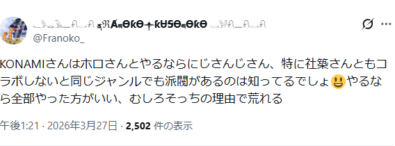 | … | 426/03/29(日)14:50:36No.1415387235+KONAMIじゃなくて社築のやる気しだいなんだわ |