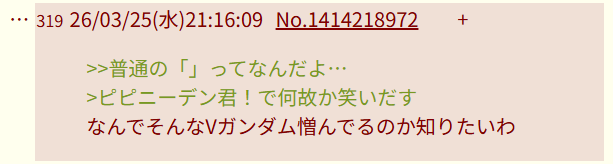 | … | 2626/03/30(月)20:10:47No.1415802441そうだねx4いつガンダムの話始めるかなあ |