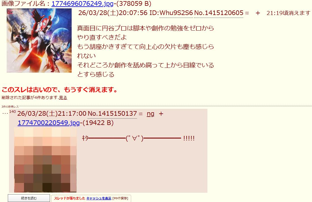 | … | 7026/03/30(月)22:47:47No.1415873131そうだねx4>開封粘着スレもお前がやってたんか |