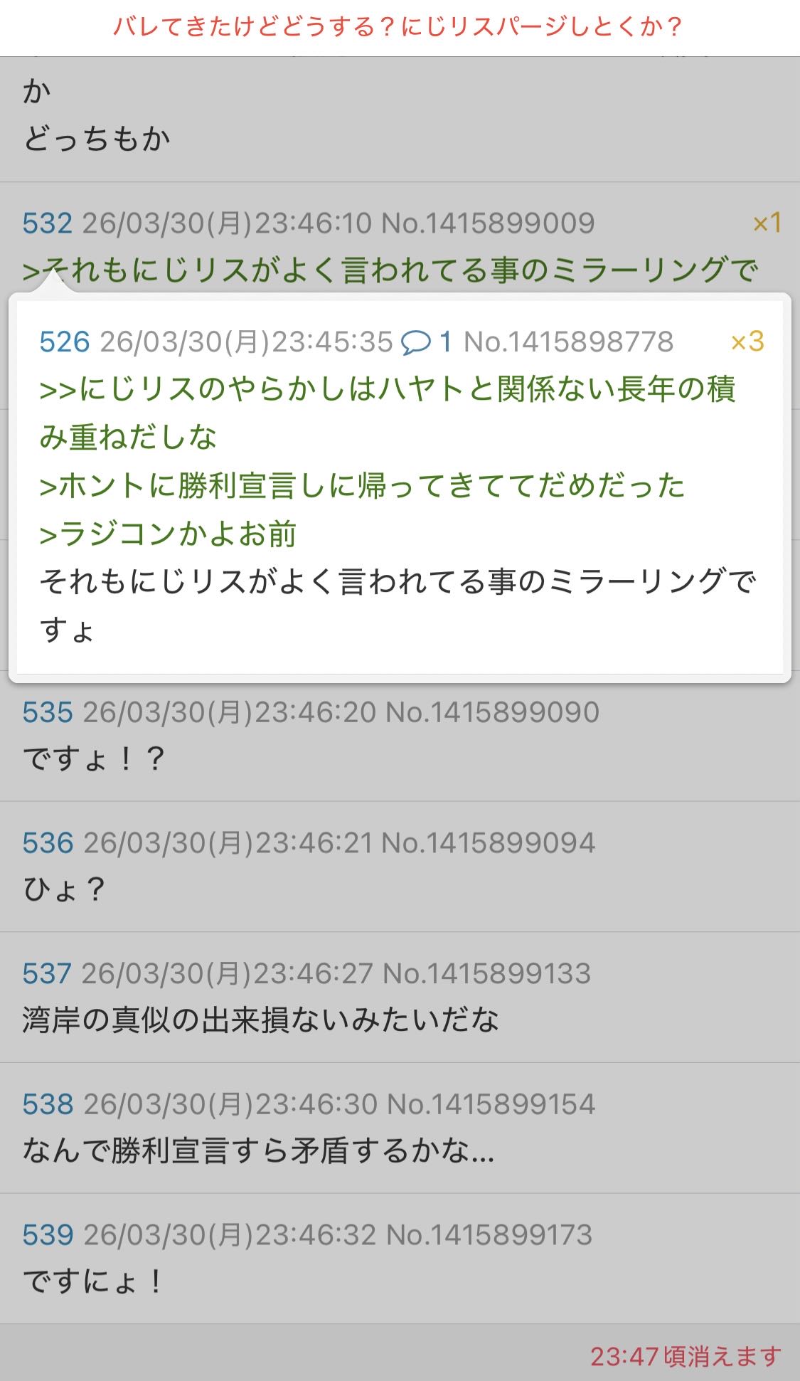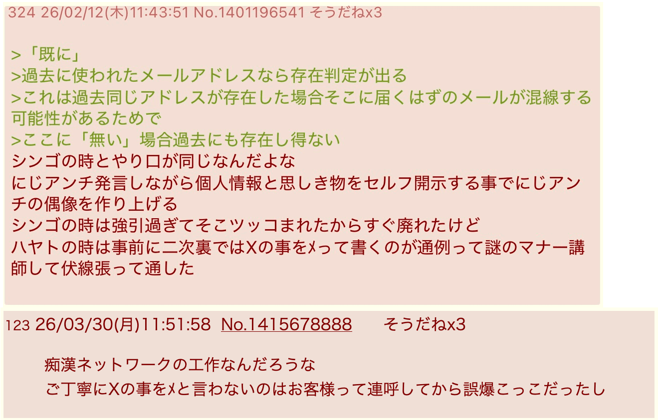 | … | 2826/03/30(月)23:51:52No.1415901305そうだねx3>>それもにじリスがよく言われてる事のミラーリングですょ |