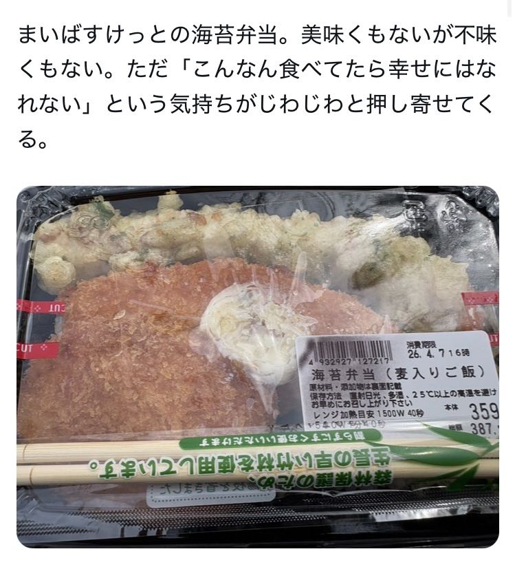 | … | 6026/04/07(火)03:00:13No.1418014347+同じイオングループのミニストップののり弁は普通にそこそこ食えたけどな… |