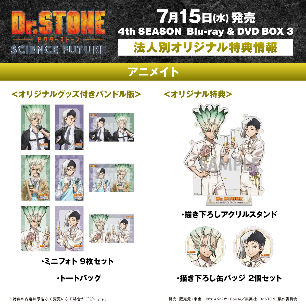 | … | 4026/04/11(土)17:47:01No.1419330611+>今まで活躍し過ぎたせいか今期はちょっと出番少ないし… それでもBOX特典は千空とゲンなのじわじわ来る |