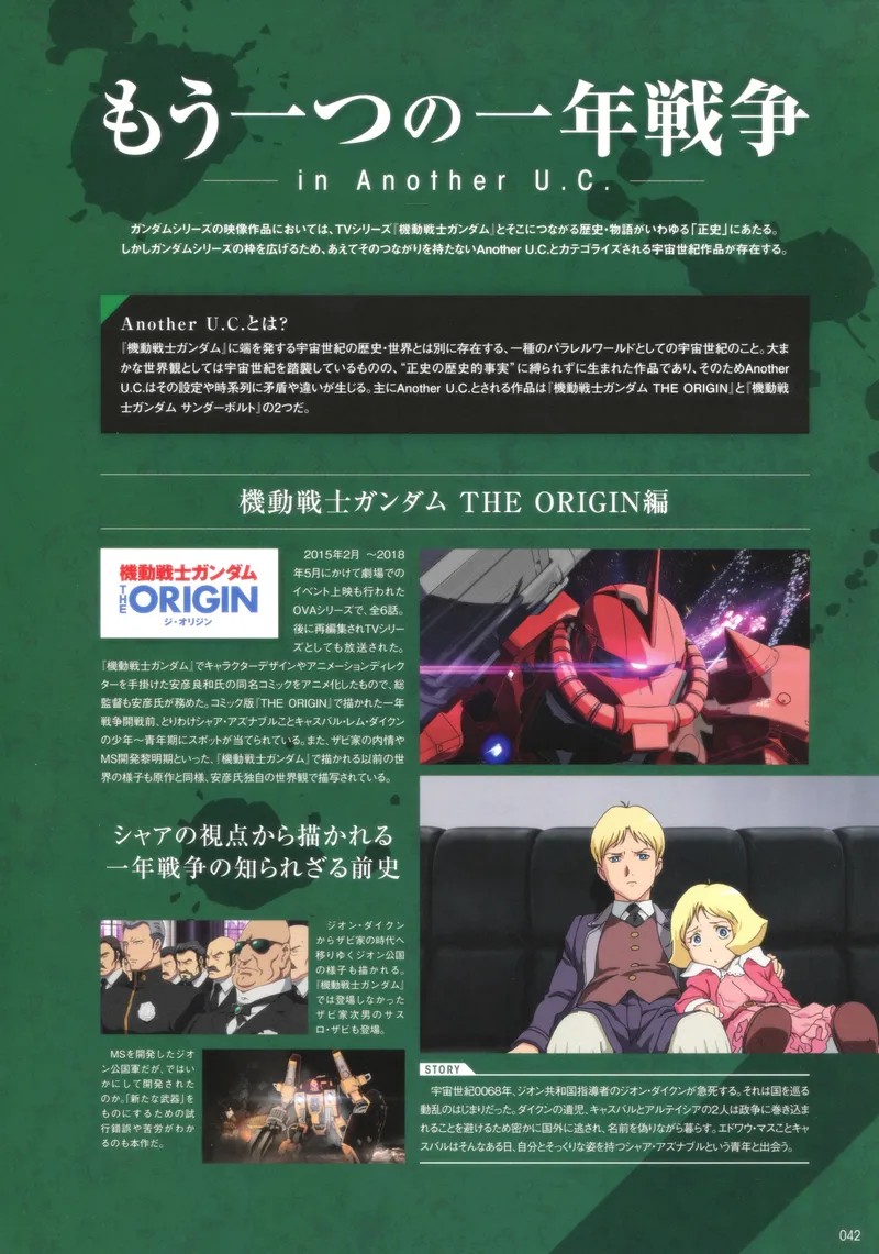 | … | 1426/04/12(日)15:53:49No.1419667379+ガンダム宇宙世紀メモリアルって冊子で『機動戦士ガンダム THE ORIGIN (OVA版)』と『機動戦士ガンダム サンダーボルト』に対して「Another U.C.」と記載されてると出てきた |