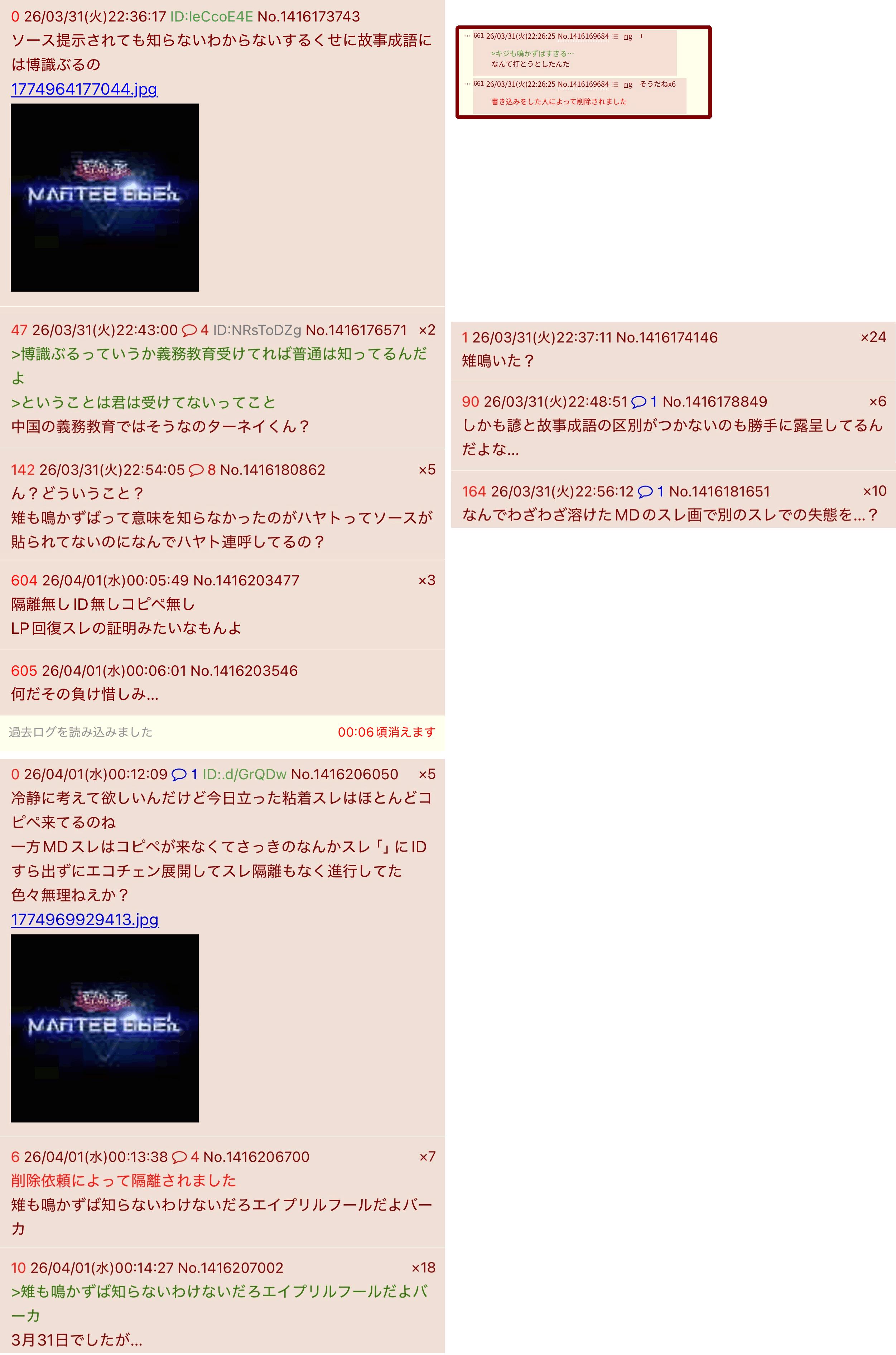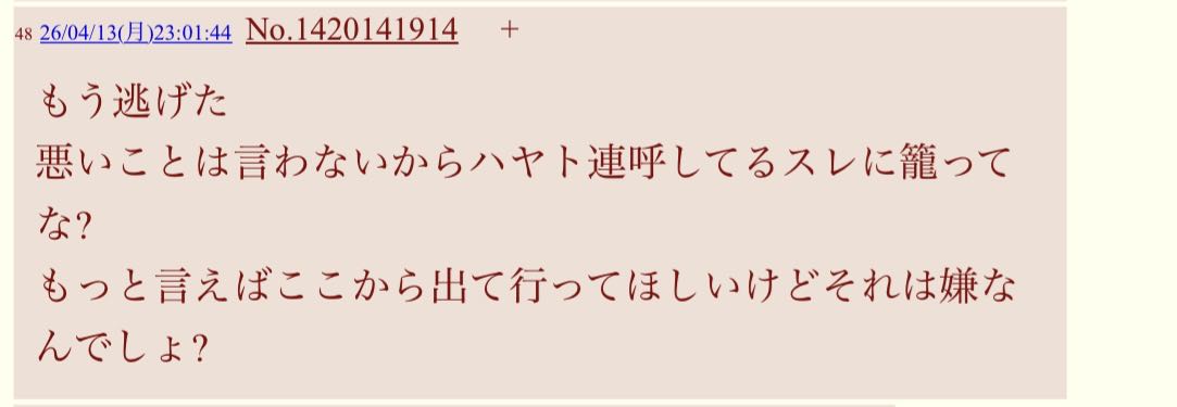 | … | 71526/04/13(月)23:28:40No.1420151975+荒らしに構うやつこそが荒らし |
