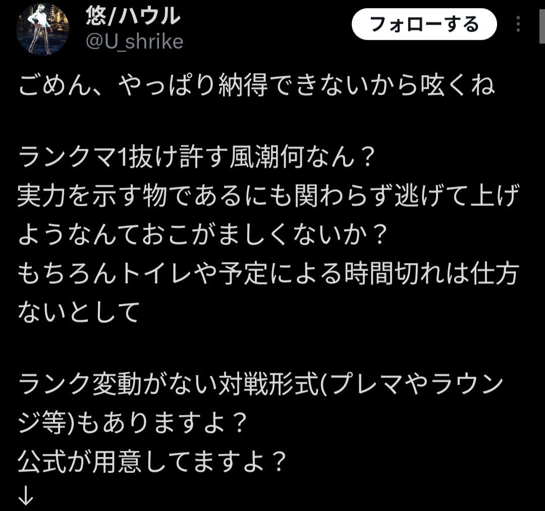 | … | 2026/04/14(火)07:29:23No.1420202822そうだねx3切断ならキレていいけど一抜けは普通の機能なんだから文句は公式に言えばいいんじゃねえか? |