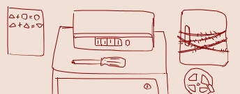 ベッドサイドテーブルの上に何があるか見せて 描いて