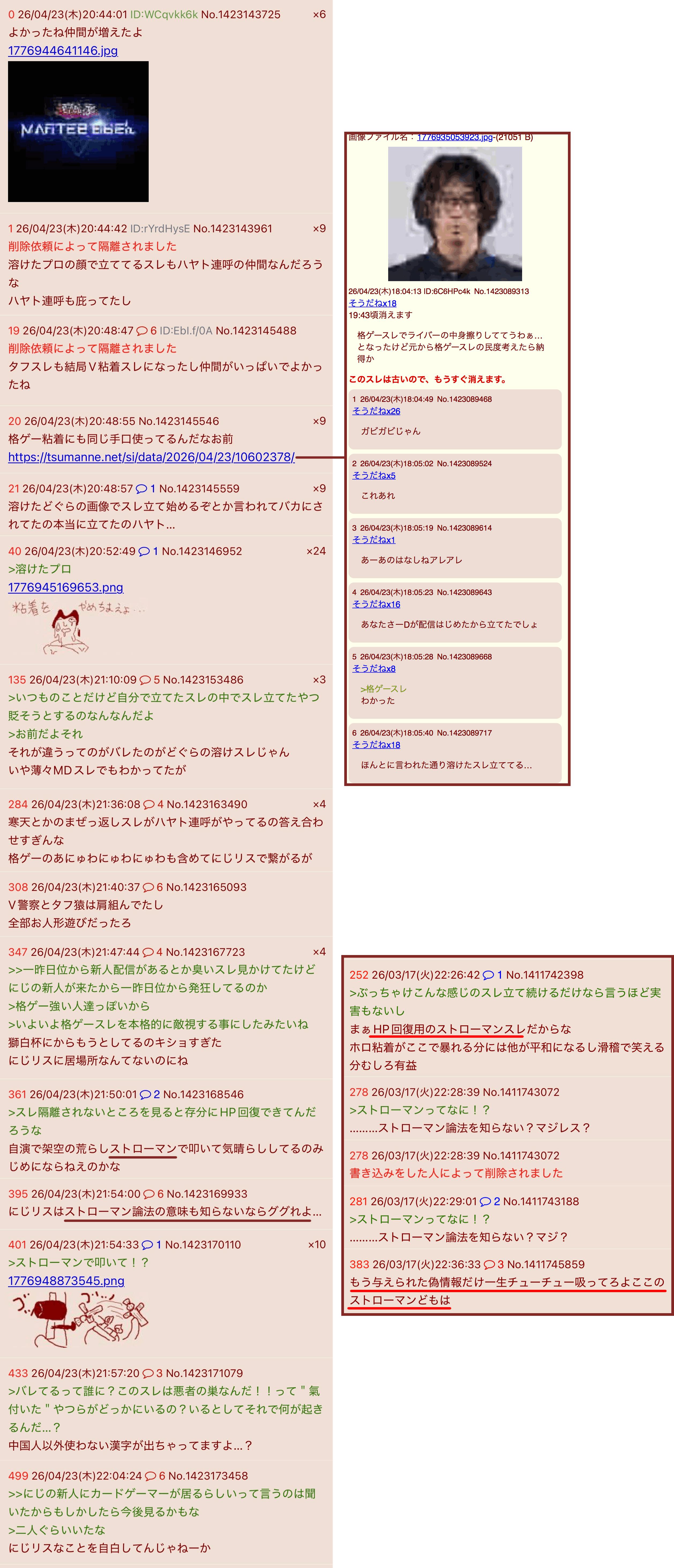 | … | 17326/04/23(木)23:41:03No.1423205427そうだねx3八咫烏が云々のアレもそのスレの中でにじリスのせいにしてたから本当にすごい |