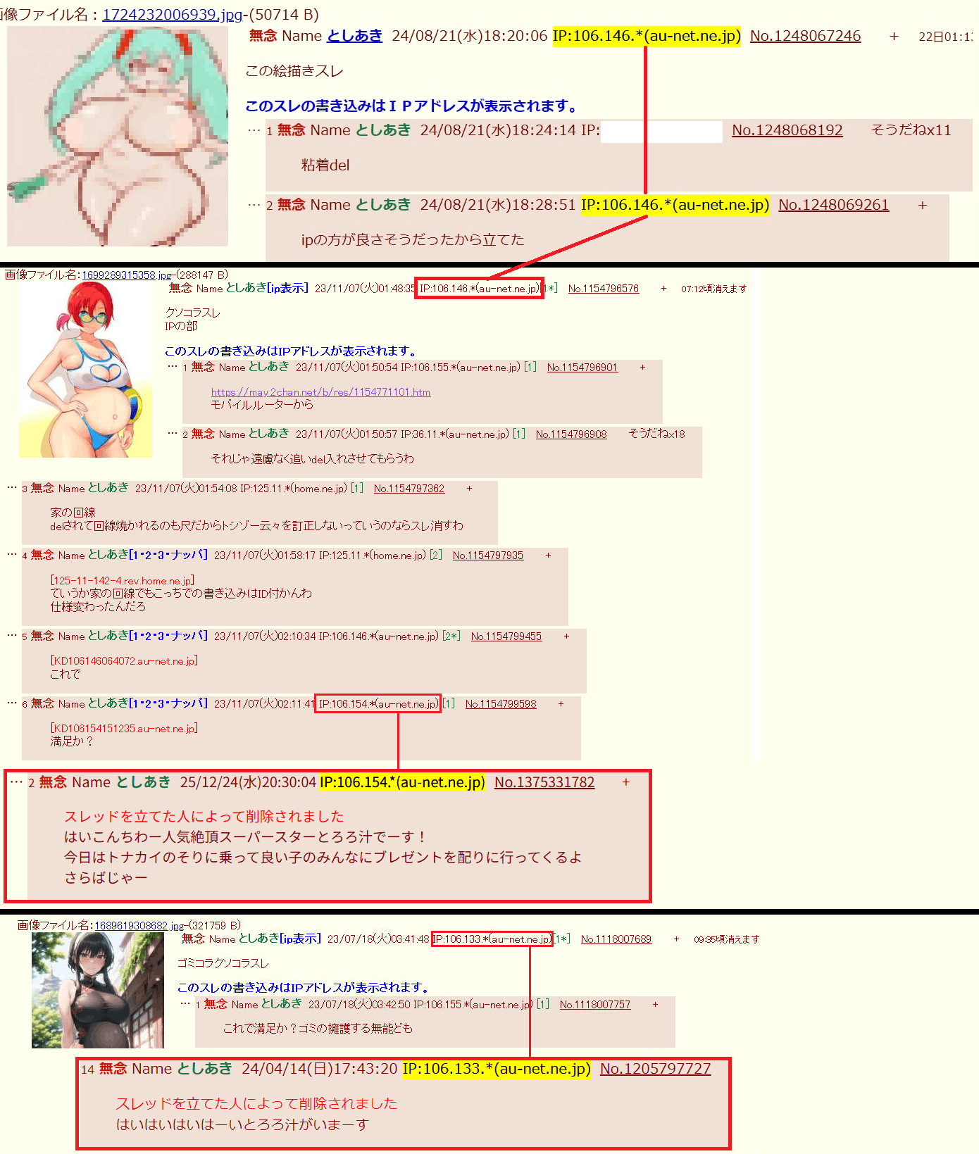 | … | 54無念Nameとしあき26/03/02(月)19:57:50No.1391157465そうだねx7>>避難所粘着やボテコラ粘着絵師粘着と同じ端末 |
