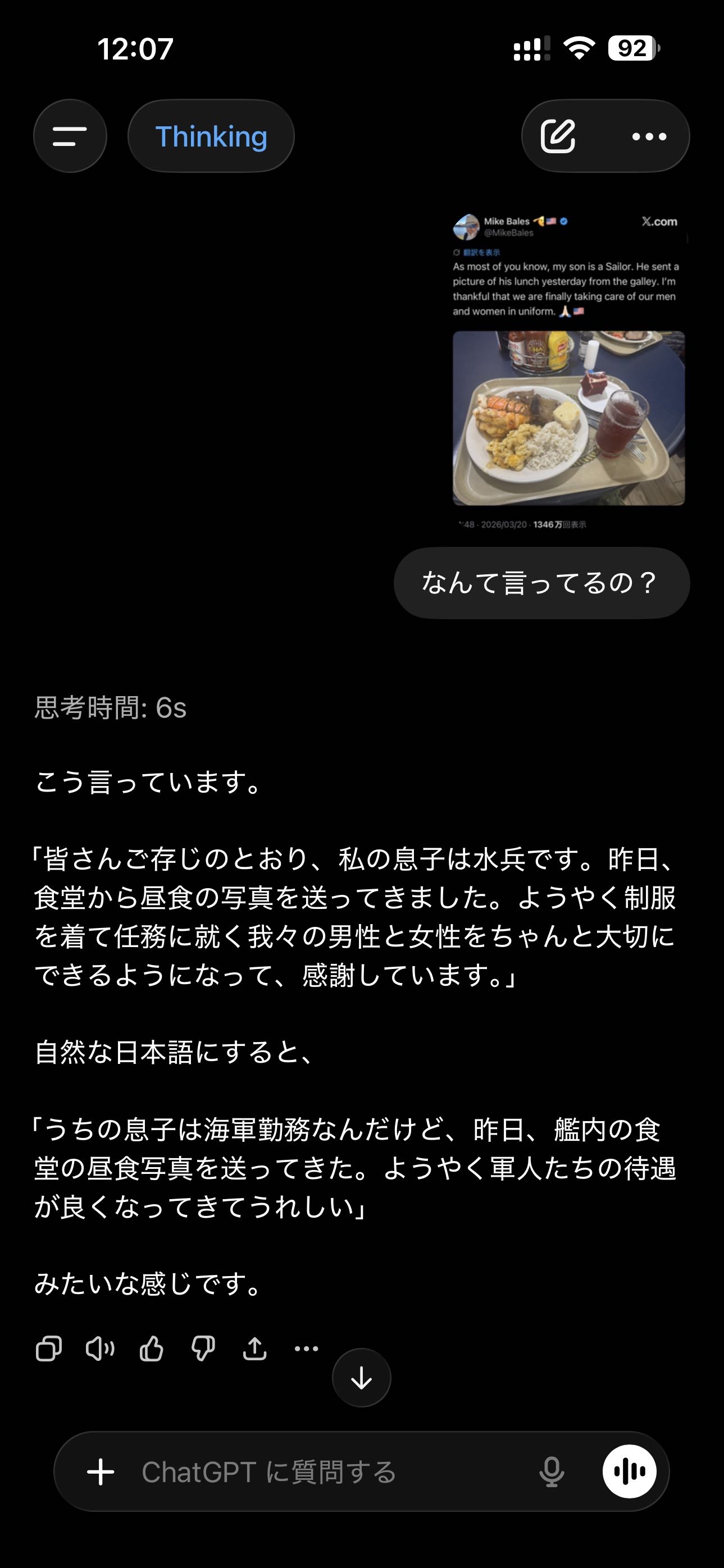 | … | 467無念Nameとしあき26/03/21(土)14:26:54No.1395351773+別のスレで米軍の食事経費がとか言ってて馬鹿丸出しのレス見かけた |