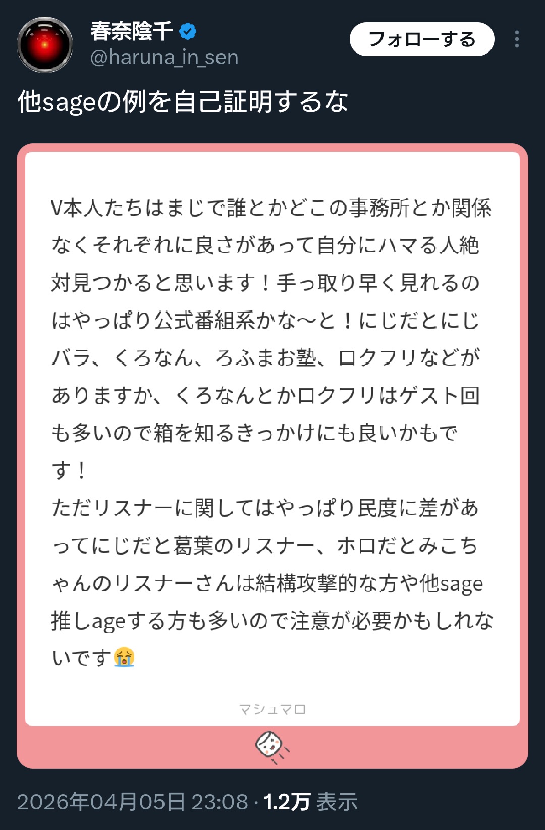 ファンがそんなことして足引っ張ってるから案件こないといつ気付くんだろうな