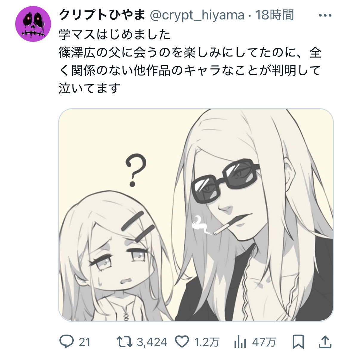 | … | 52525/01/31(金)17:33:58No.1278382307+テスカトリポカが広の父親扱いされてるというネットミーム?を初めて知った |