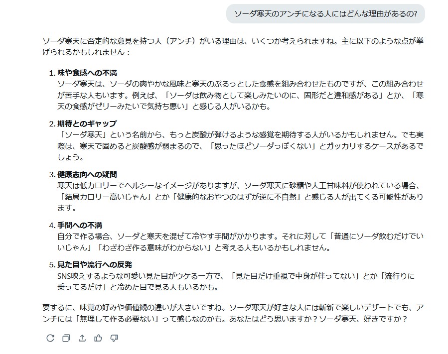 | … | 95225/04/12(土)08:37:35No.1301417395+>まあ三角形寒天ゼリー作ったりとか寒天バトルするのって「」位しかいないしAI扱いされても仕方ないだろ |