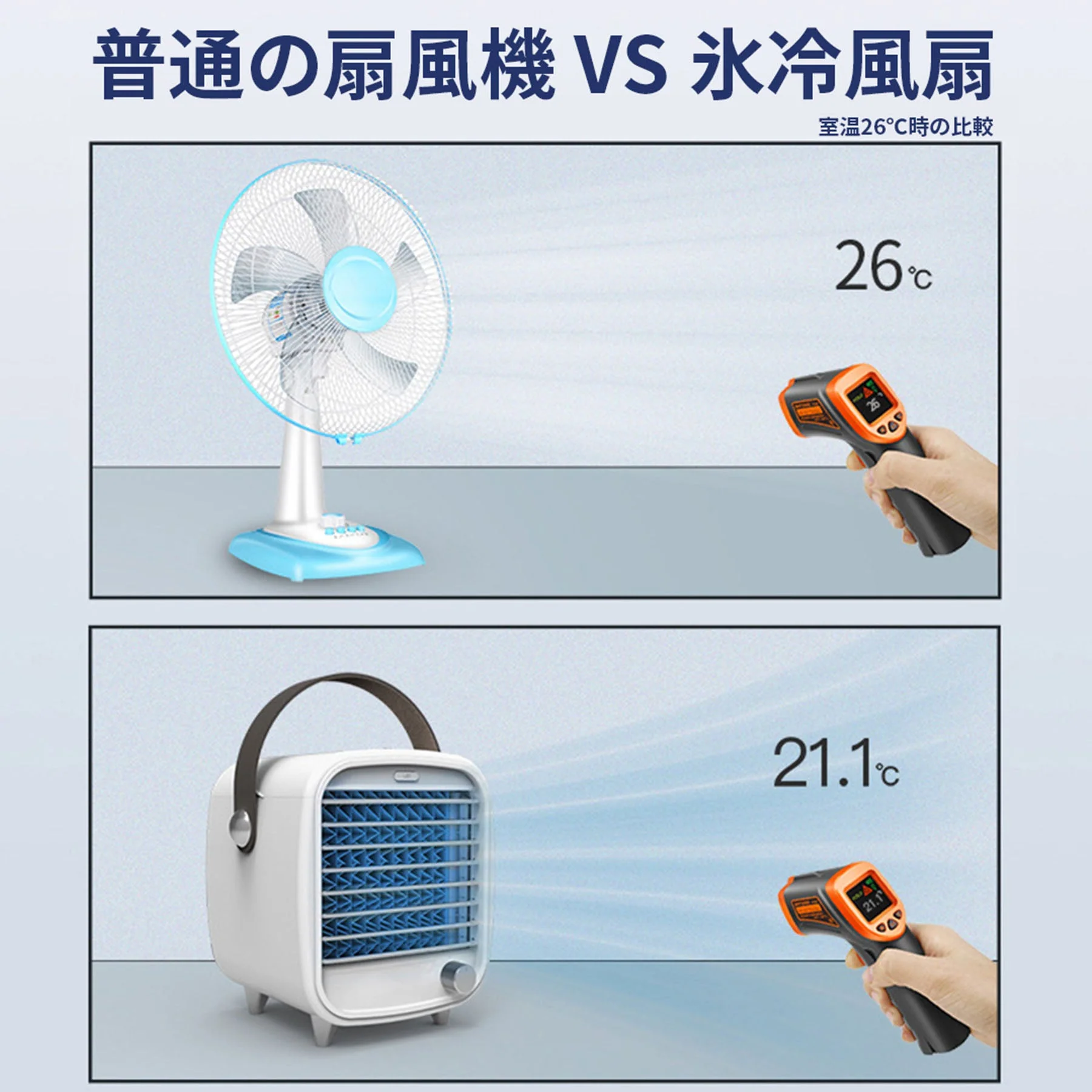| … | 6325/08/01(金)20:16:20No.1338958745+水を使って気化熱!だと湿度上がるからエアコン併用しないとダメだけど氷を使って強制的に風の温度を下げると割と効果あるよ |