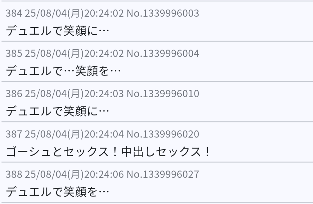 | … | 99025/08/04(月)20:30:29No.1339999066+自然な流れでデュエル |