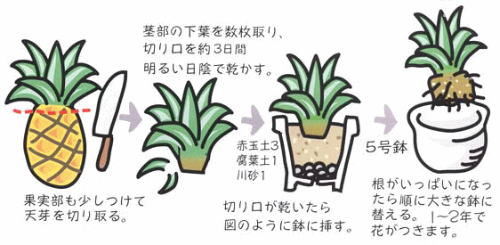 | … | 1925/08/05(火)21:15:38No.1340325961+パイナップルの頭の部分植えるとうまくすれば実になるみたいだぞ |