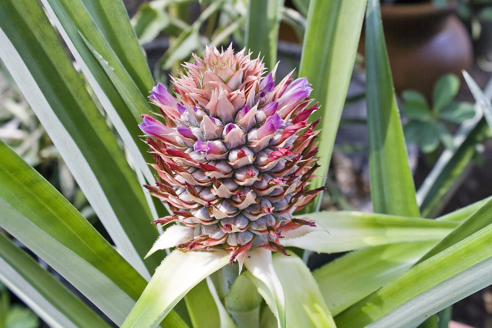 | … | 7725/08/05(火)21:48:35No.1340339283そうだねx2fu5400368.jpeg パイナップルの花はこんなん 多数の花の集合体でこの花一個一個がパイナップルの表面の蜂の巣模様のひと区画ひと区画に対応してるのでパイナップル自体も一つの果実ではなく多数の果実の集合体になる |