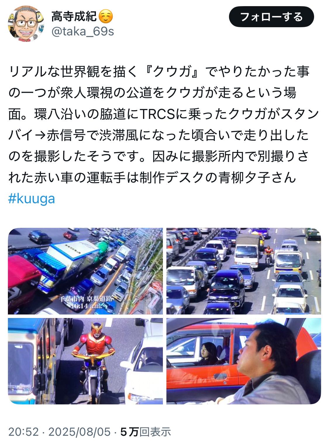 | … | 9525/08/06(水)03:48:59No.1340423159+そもそもそれこそ昔の仮面ライダーの公道撮影なんてほぼ全部合法の突き合わせしてやってるもんじゃん |