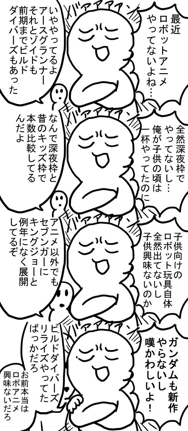 | … | 28325/08/06(水)16:37:16No.1340539428そうだねx2ロボットアニメ衰退マンは単純にロボットアニメを知らないのだ |