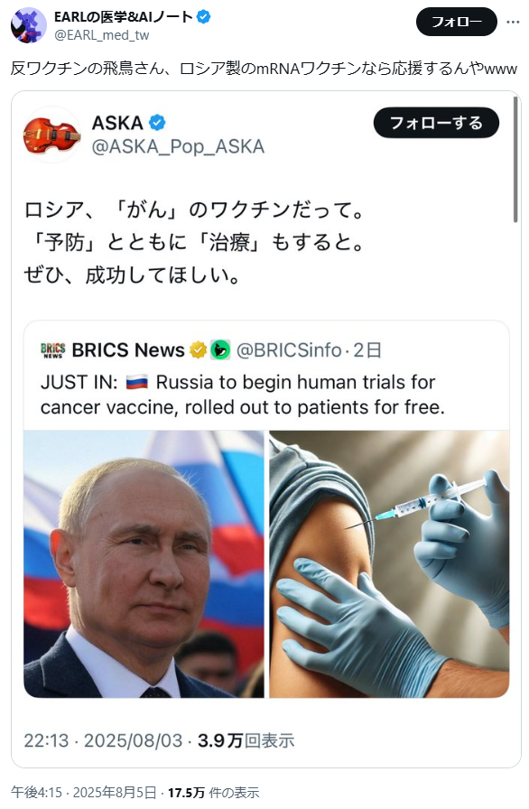 | … | 425/08/06(水)17:46:27No.1340553853そうだねx1なんで陰謀論者ってロシア好きなんだろう |
