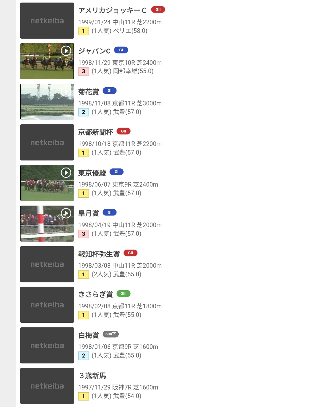 | … | 16625/08/07(木)00:28:58No.1340680993+逆に武豊といえば!となると山程出てくるのズルくないですか? |