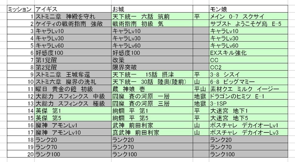 >灰色が既にクリアしてたら達成扱い