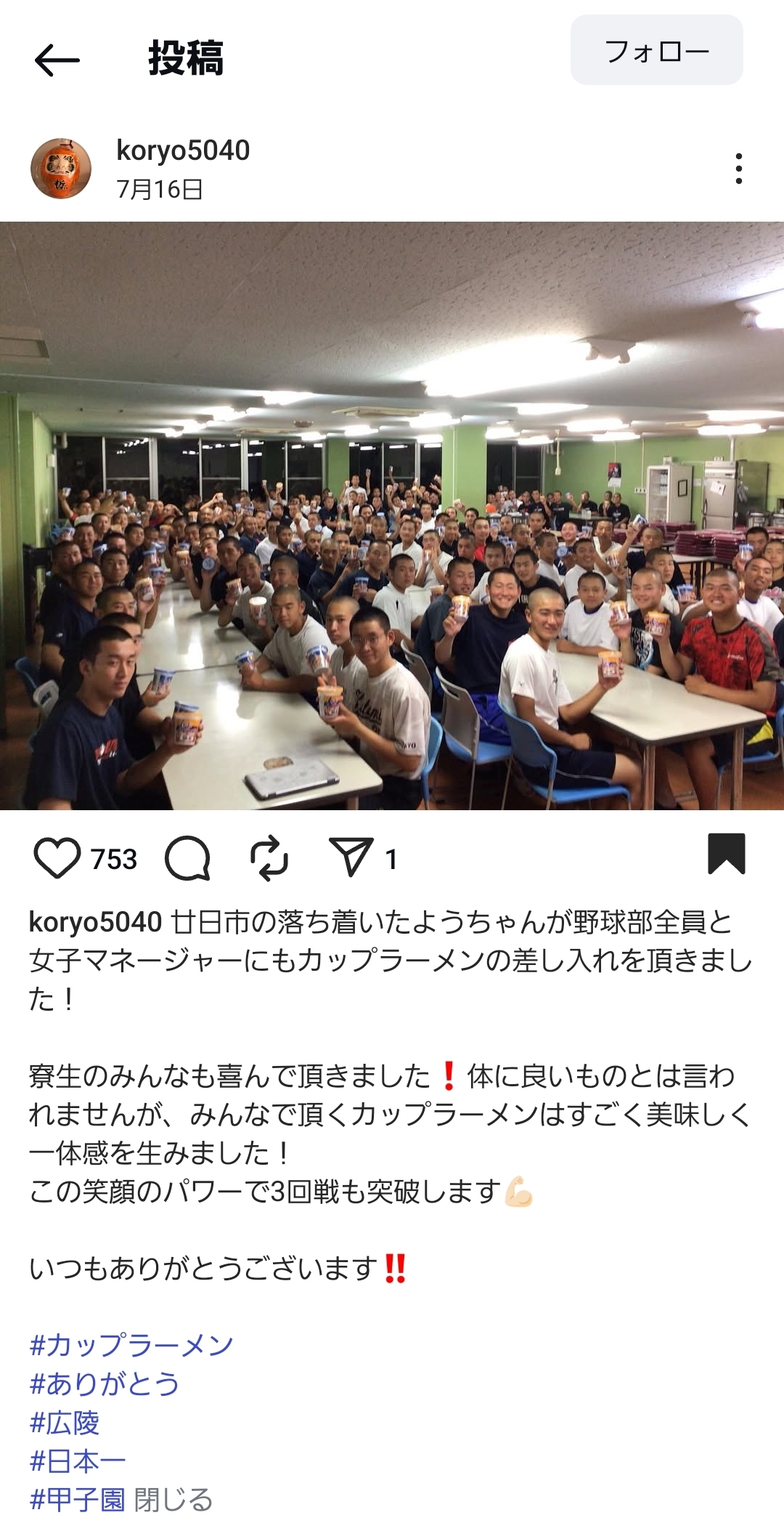| … | 96025/08/09(土)07:55:55No.1341322775+>壮行会で自慢の弟です!みたいな感じで主将の姉も顔出ししてたな |