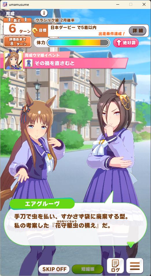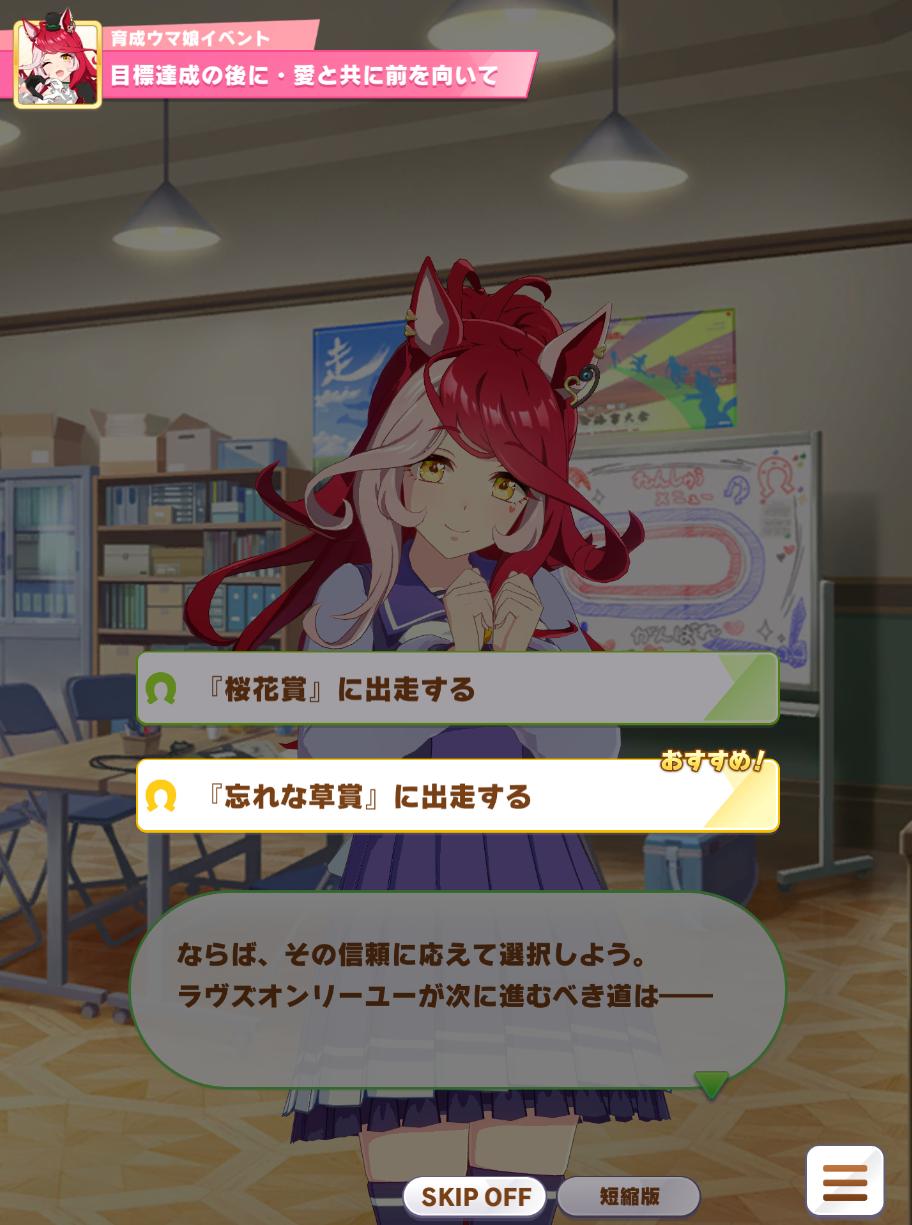 | … | 22725/08/09(土)12:57:05 ID:9KRXMh2.No.1341382693そうだねx1>一旦全スキップで飛ばして育成してからギャラリーでシナリオ見てたんですがおすすめ再生だと選択シーンこうなるんですね >fu5414048.jpg (マイルでおはマイルの相手しても仕方ないので忘れな草賞に出るのが)おすすめ! |