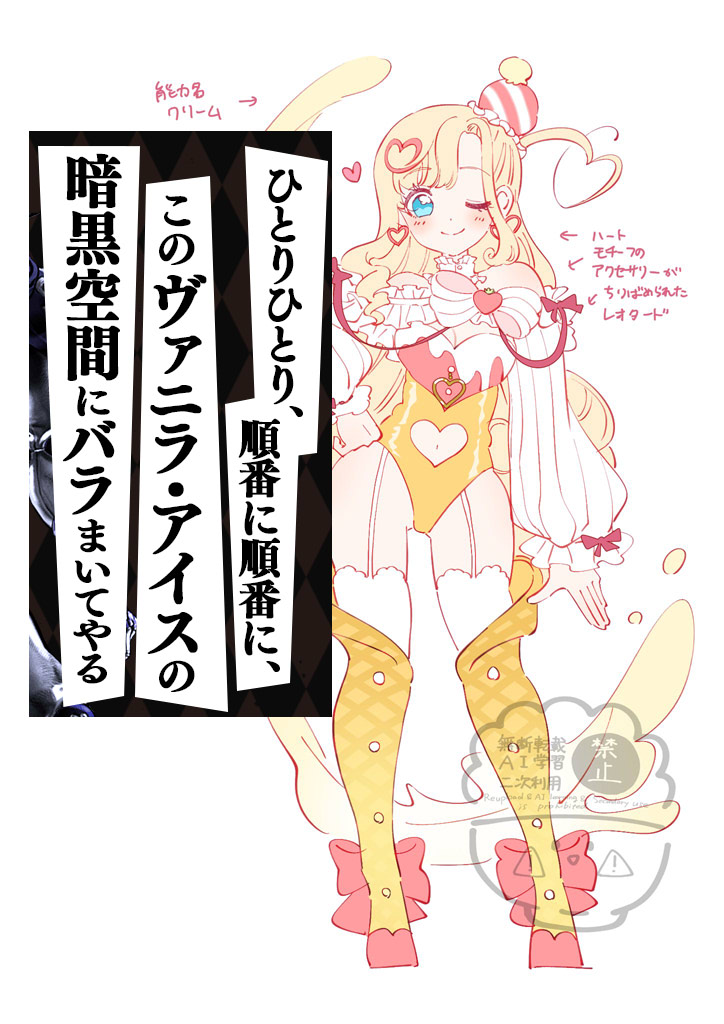 | … | 2925/08/09(土)16:25:49No.1341433879+ゆるふわロングのハートモチーフのアクセサリーが散りばめられたレオタードを着てて能力名がクリームのヴァニラ・アイスちゃん!? |