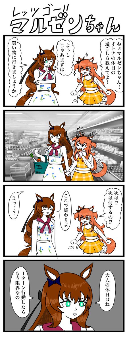 >マルゼンさんはもうちょいこう…バブリーな感じの休日にならないんですか…