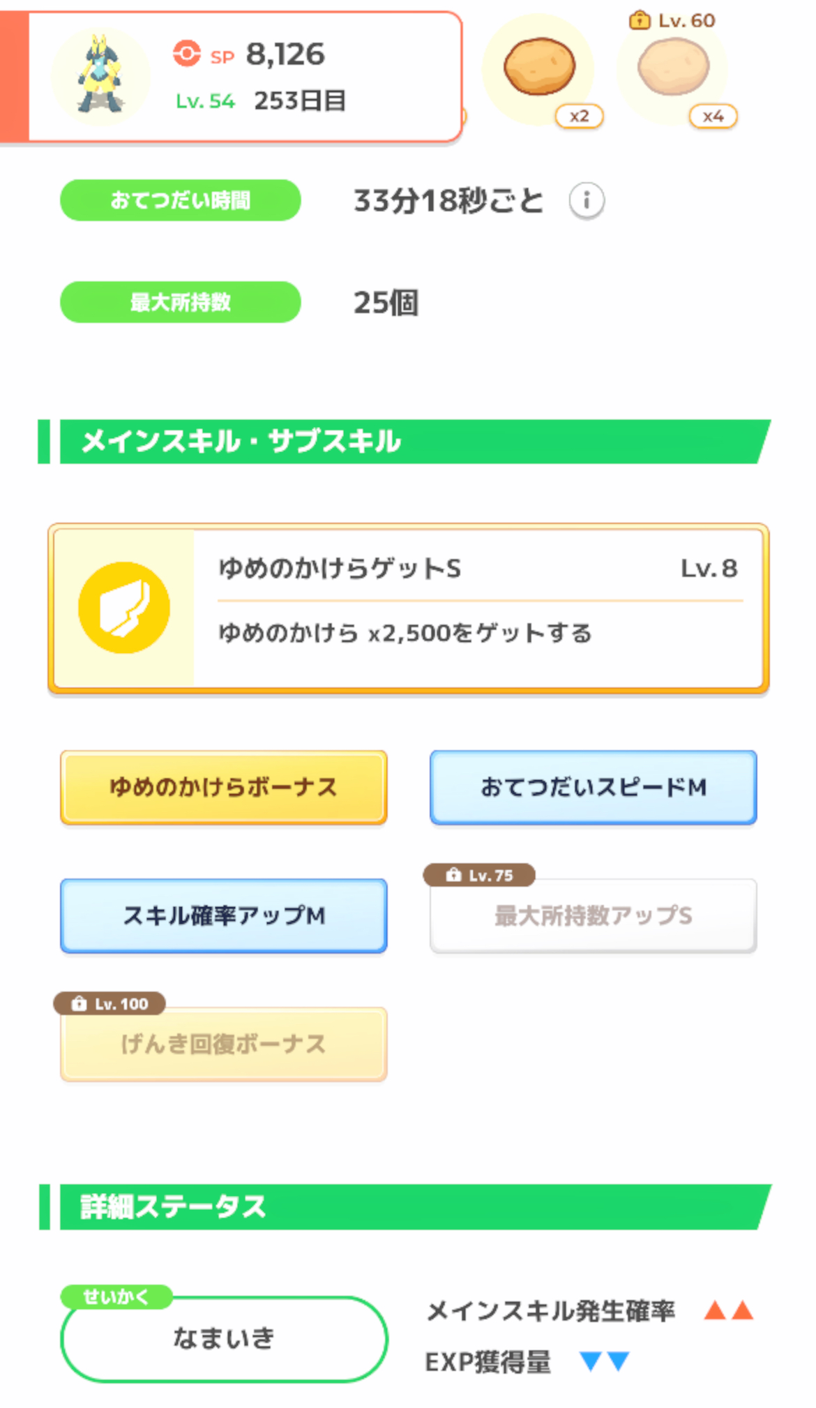 | … | 7325/08/10(日)20:55:14No.1341857354+食材得意は目的の食材並びで食確ついてて性格がデバフついてなきゃアガリだと思うゴン |