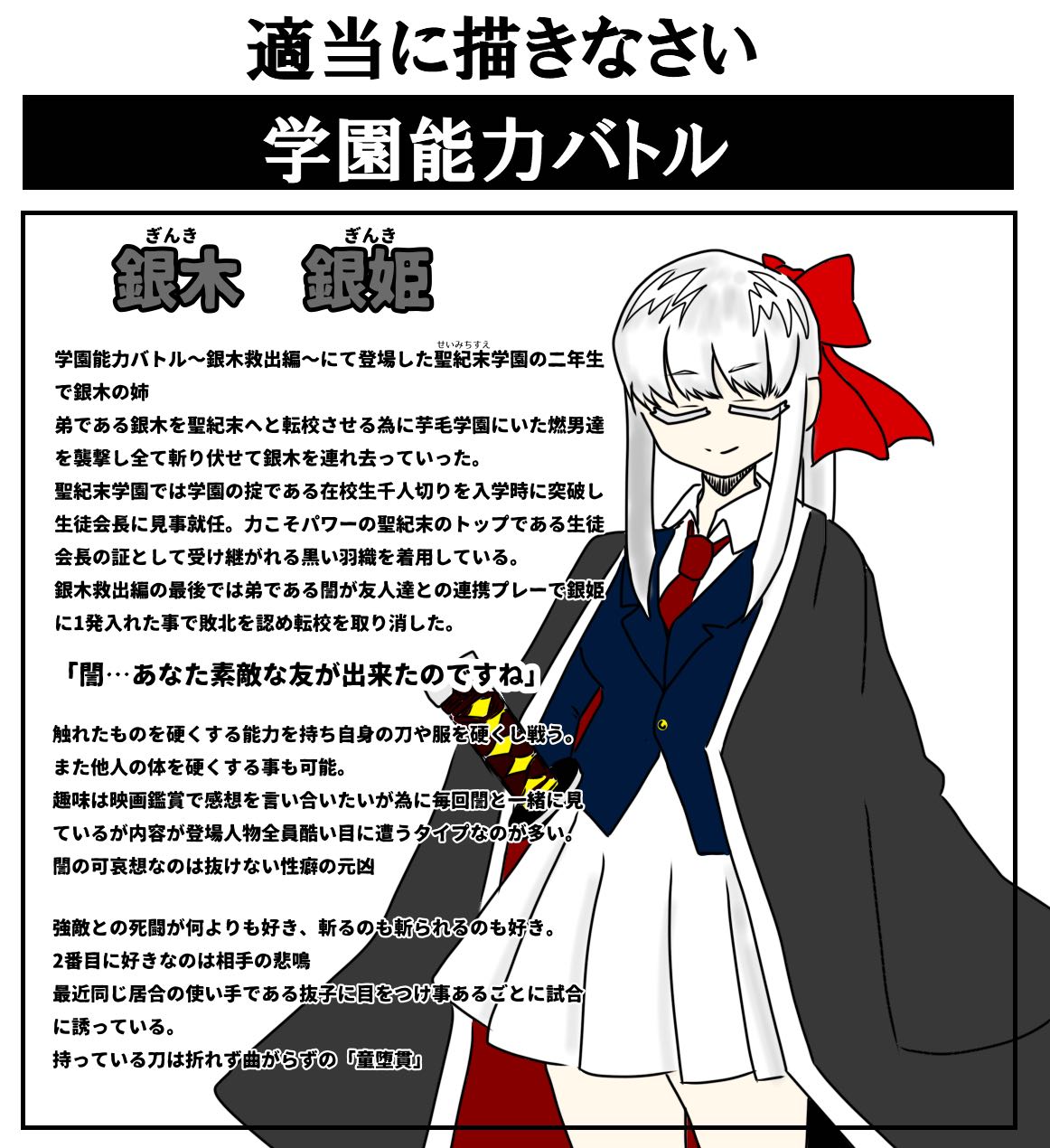 学園能力バトル〜銀木救出編〜のラスボスお姉ちゃん描きましたこのスレは古いので、もうすぐ消えます。