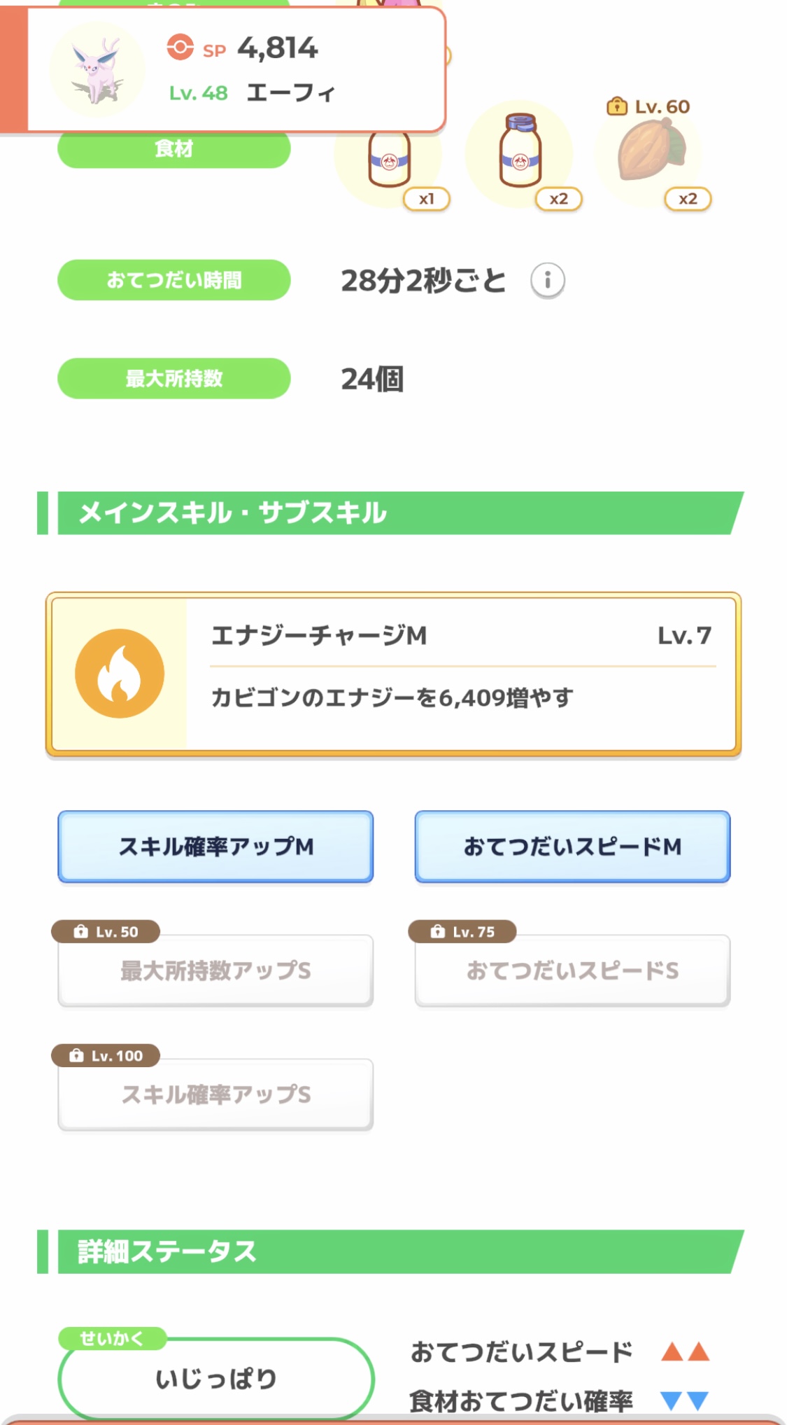 | … | 22125/08/11(月)18:45:47No.1342149795そうだねx3>シャワーズの性格スキルって食材↑とスキル↑どっち優先がいいの? スキル |