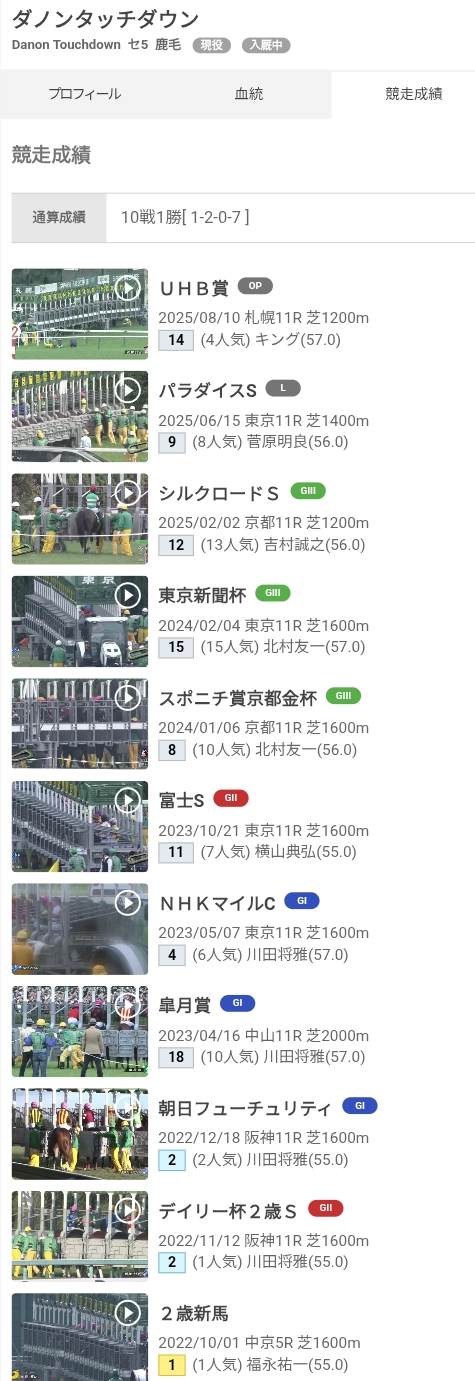 | … | 3625/08/11(月)18:05:57 ID:16GmxuX.No.1342136025そうだねx1>NHKマイルCの勝ち馬はその後ぱっとしないジンクスを地で行ってますね🦂 |