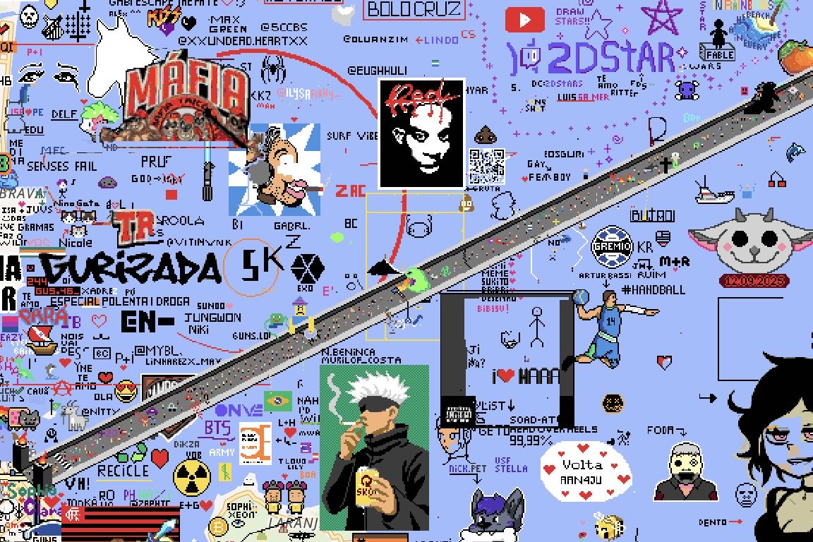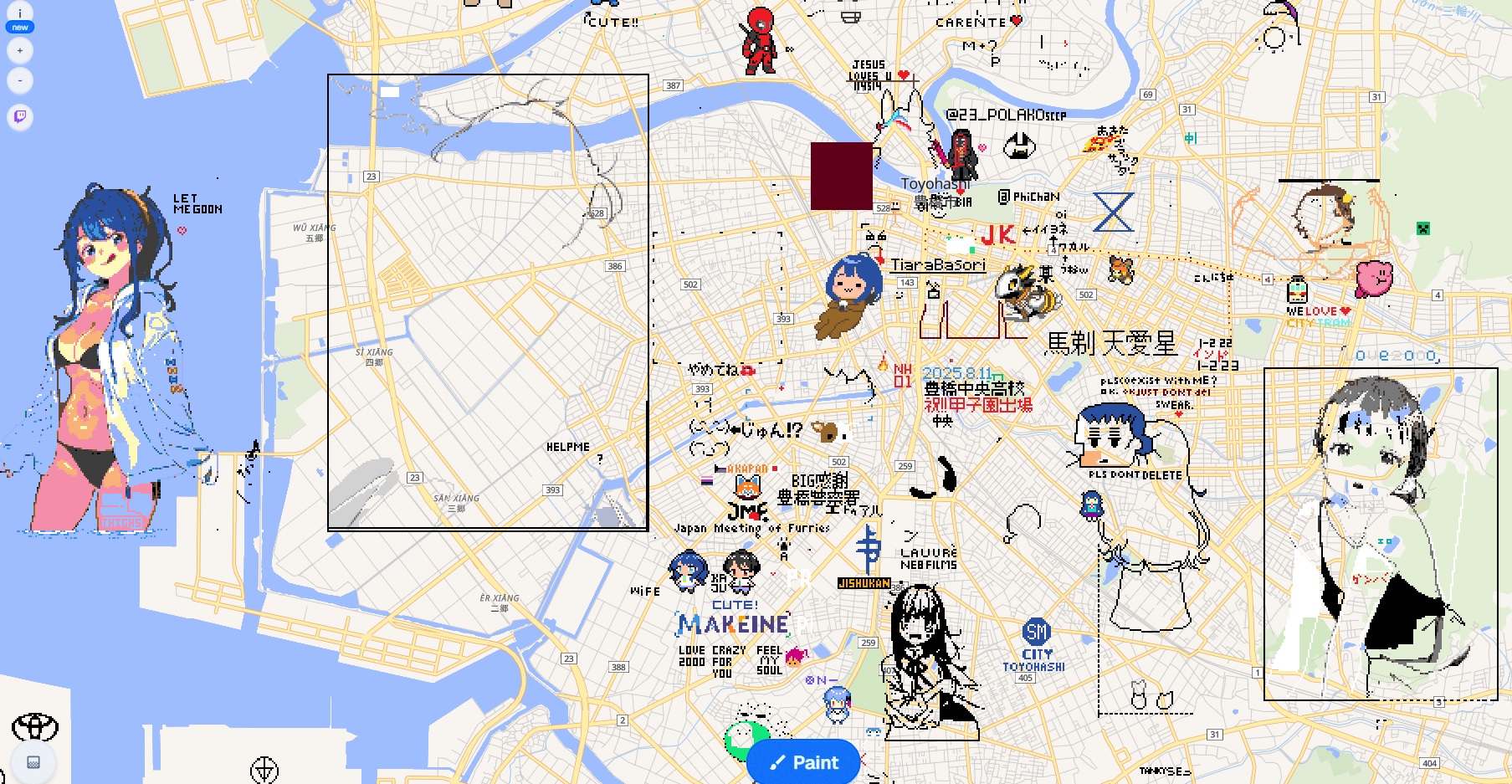 | … | 2625/08/13(水)10:54:44No.1342706346+googlemapでドット単位のお絵描きチャットしてるの…? |