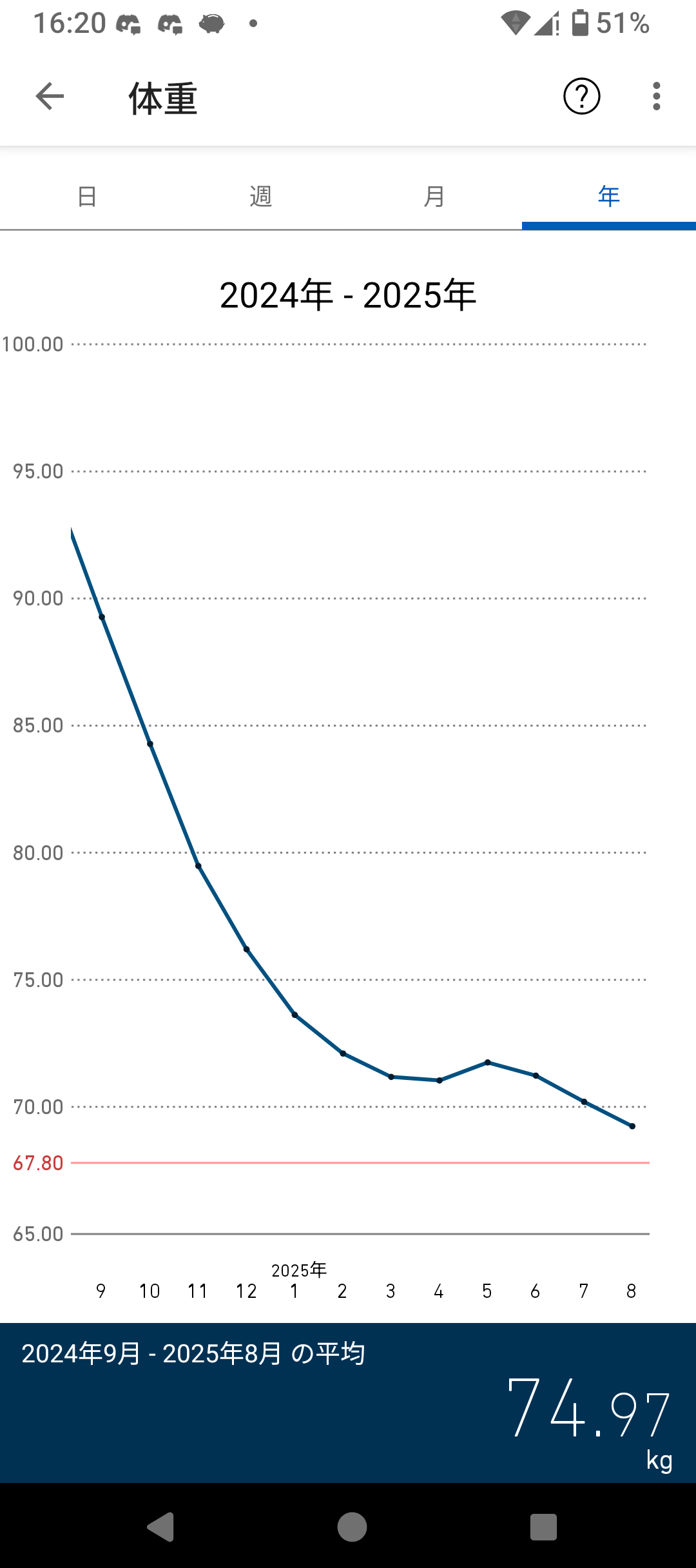 | … | 20625/08/14(木)17:24:02No.1343102321+>俺レベルのデブになると水分量だと思うが1日で3kg前後する |